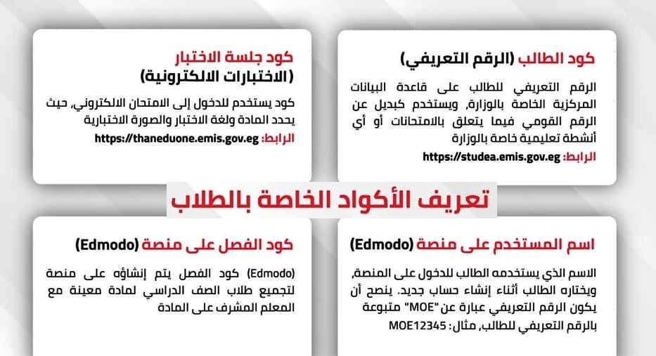 الاكواد الخاصة بالطلاب وزارة التربية والتعليم