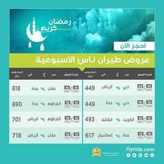 عروض الرحلات اﻷسبوعية من طيران ناس العروض والتخفيضات